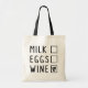 Die Shoppingtasche mit allen "Wesentlichen" ist hier aufgelistet; Milch, Eier und Wein (natürlich!).