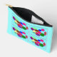 Shop in Style. Das Motiv des Beutels zeichnet sich durch ein lebendiges, abstraktes Muster aus, das viermal auf hellblauem Hintergrund wiederholt wird. Jeder Bereich ist eine rechteckige Tafel mit überlappenden bunten ovalen und kreisförmigen Formen in verschiedenen hellen Farbtönen wie Magenta, Kalkgrün, Rot, Blau und lila. Diese Formen sind in einem dynamischen, verstreuten Layout angeordnet, wodurch eine spielerische und energetische Komposition entsteht. Der Beutel ist mit einem schwarzen Reißverschluss mit einer goldenen Pause versehen, was dem belebten Kunstwerk einen eleganten Kontrast verleiht. Das Gesamtdesign ist kühl, modern und künstlerisch - perfekt für ein unterhaltsames und kreatives Accessoire.