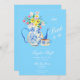Diese Einladung mit Blumenblauen und weißen Teekannen mit bunten Blume ist perfekt für das schönste Brautparty.
