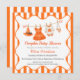 Feiern Sie Ihren kleinen Kürbis mit diesem Halloween Baby Duschmädchen-Design in festlich orange und schwarz. Eine niedliche Einladung mit Kürbis und witzigen Details, perfekt für eine Herbstdusche.
