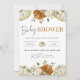 Begrüßen Sie ein neues kleines Wesen mit dieser charmanten herbstinspirierten Babyparty-Einladung! Mit eleganten weißen Kürbissen, rostfarbenen Blumen und zartem Grün, das um einen gemütlichen orangefarbenen Gingham-Rahmen angeordnet ist, erfasst dieses Design perfekt die Wärme einer herbstlichen Feier.