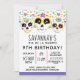 Feiern Sie mit einem farbenfrohen Sugar Skull / Dia de la Muerte Thema! Verfügt über bezaubernde Zucker-Schädel, mit koordinierendem Farbhintergrund. Das Ganze ist von rosa, blau, grün, orange und gelb.