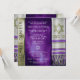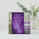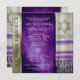 Passen Sie diese goldene und lila Bar Mitzvah-Einladung mit einem Gebetshawl in blau und Star of David an.