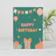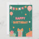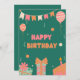 Mit dieser bezaubernden "Happy Birthday"-Karte mit einem lebendigen grünen Hintergrund und festlichen Illustrationen macht das Geburtstagsgeschenk für jeden etwas Besonderes. Dieses Design umfasst Ballons, Geschenke und ein Stück Geburtstagskuchen, die alle in warmen Tönen wie Rosa, Orange und Creme zum Leben erweckt werden. Mit spielerischen Bannern und Konfetti erweckt diese Karte die Freude, einen Geburtstag stilvoll zu feiern. Ideal für Geburtstagsfeiern, Geschenkgutscheine oder als eigenständiger Begrüßungsgruß, um Ihre Wünsche zu erfüllen. Ideal für alle Altersgruppen und garantiert für einen unvergesslichen Tag!
