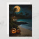 Es ist Dämmerung in den Tropen und Sie sind am Strand - und es ist Halloween! Eine schöne leere Karte, perfekt für einen Halloween-Gruß.