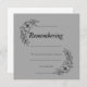 "Ein feierliches und respektvolles Begräbniseinladungs-Set vor einem gedämpften grauen Hintergrund. Elegante, schwarze Blume schmücken die Ränder und verstärken den düsteren Ton. Der Text, in einem formellen Schriftart geschrieben, vermittelt die Details des Dienstes mit Anmut und Einfachheit, unter Anerkennung der Erinnerung an die Verstorbenen. Diese Einladung soll die Schwere des Ereignisses widerspiegeln, mit unterstrichenen, aber nachdenklichen Details, die ein Gefühl von Reflexion und Erinnerung wecken."