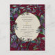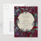 Diese bordeauxrote Hochzeitseinladung Postkarte bietet lila und rote Blume, Grün und Gold gerahmt oval und gold Drehbuch. Passen Sie Ihre Hochzeitsdetails an.