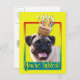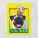 Laden Sie Ihre Gäste mit dieser whimsical Mops Dog Grußkarte ein. Mit einem Kuchen auf dem Kopf wird dieses Design sicher ein Lächeln und ein Giggles bringen! BTW, Dieses Design hat mehrere Versionen, mit verschiedenen Hintergrundfarben. Es gibt auch eine Happy Birthday Version.
