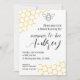 "Mama-to-bie" Baby Dusche Einladung. Klassisch in Weiß und Schwarz mit Touchs Honiggelb und einer niedlichen kleinen Biene.