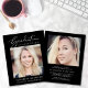 Elegante preisfreundliche Girl's Black Abschluss Ankündigung und Party Einladung mit "Abschluss Celebration" in einer eleganten weißen Schrift und weiße Typografie, ihr Foto und ihren Namen, Schule und Klasse Jahr in schlichter moderner weißer Typografie. Auf der Rückseite, fügen Sie ein weiteres Foto und die Graduierung Party Details.
