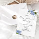 Elegante Einladung zur Begegnung mit Aquarellbildern von blauen Blume mit Grün. Ideal für Ihre Hochzeit im Frühling oder Sommer.