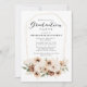 Boho Script Floral Graduation Party Einladung - ist der perfekte Weg, um Ihre Abschluss-Feier zu verkünden. Schöne neutrale Flora mit goldgeometrischem Rahmen und hübscher Schriftzypografie. Das Foto des Absolventen wird auf der Rückseite der Einladung vorgestellt.
