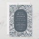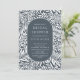 Modernes Blatt- und Blume-Muster mit einem stilvollen ovalen Rahmen, der Ihre Party-Informationen in navy und weiß.