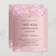 Hintergrund mit rosafarbenem Farbverlauf. Die Einrichtung besteht aus rosa Imitaten, Glitzer, Konfetti und einem Kreuz. Personalisieren und fügen Sie einen Namen und Details. Der Name wird mit einem handgeschriebenen Stilskript geschrieben