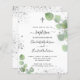 Für die Taufe von 2 Kindern. Weiß mit Eukalyptusgrün und Imitaten verziert silberne Glitzer Staub. Personalisieren und die Namen der Kinder und Zeremonie Details. Schwarze Buchstaben. Geschlechterneutral. Zurück: weißer Hintergrund mit Imitaten Glitzer Staub.