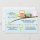 Beginnen Sie Ihre Babydusche mit dieser niedlichen Drei-Eulen-Dusche auf einem Zweig und einem Baby im Nest niedliche Babydusche , Blätter, die sich perfekt für eine Blue-Boy-Dusche-Einladung eignen, Karo aus dem Laden für die Babydusche eines Mädchens und eine geschlechtsneutrale Babydusche-Einladung im gleichen Design
