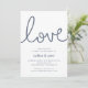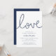 Unsere schicken Sommer-Party-Einladungen an der Küste bieten klassische nautische Stilelemente in Marineblau und Weiß. "Liebe" erscheint oben in der Looping-Schrift, die mit nautischen Seilen geformt wurde. Personalisieren Sie Ihre persönlichen Gruppendetails in einer schicken Kombination aus Serifen und serifenlosen Schriftzeichen. Ideal für Verlobungen mit Wassersport-, Sommer- oder Strandthemen.
