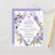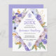 Sehr hübsche lila und blaue Blumen schaffen einen Diamantenrahmen um die Details Ihrer Graduierungsparty. Die goldenen Blätter und Blume sorgen für eine unverwechselbare Glam-Atmosphäre. Zwei abstrakte Blumenformen verleihen Flair. Lila Kalligraphie macht den Namen des Absolventen wirklich auffällig.
