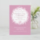 Ein charmantes Design mit einem gedämpften, rosa-herzigen Hintergrund mit einer weißen, kreisförmigen Blumenplatte für Ihre Personalisierung.Die Karte lässt sich leicht mit Ihrem Text, Schriftart, Schriftart, Papierform und der Auswahl von sechs Papiertypen anpassen.