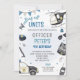 Backup senden - es ist Zeit für das Party! Diese lustige Einladung zum Geburtstag im Polizeifach ist perfekt für kleine Offiziere, die stilvoll feiern können. Mit Polizeiautos, Hubschraubern, Abzeichen und kühnen Farbtönen ist dieses personalisierte Design ein Set für einen erlebnisreichen und erlebnisreichen Tag.