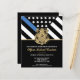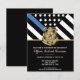 Ehre den Einsatz und die harte Arbeit eines neuen Strafverfolgungsbeamten mit dieser anpassbaren Einladung des Abschlusses. Dieses Design mit einem polizeilichen Abzeichen und einer Polizeifahne mit fett schwarz-weiß Streifen und einer stolzen blauen Linie symbolisiert Stärke, Service und Opfer. Die Einladung ist personalisiert mit dem Namen des Absolventen in Goldschrift, was es zu einem unvergesslichen Sake für Freunde, Familie und Kollegen macht. Ideal, um einen Abschluss, eine Werbeaktion oder einen Meilenstein in der Karriere eines zukünftigen Offiziers zu feiern. Laden Sie Ihre Gäste stilvoll ein und zeigen Sie Unterstützung für das neueste Mitglied der Thin Blue Line Community.