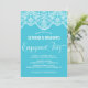 Türkis Blue Indian Lace Engagement Party Einladung Elegante und verzierte Einladung mit marokkanischem Spitzentyp und kalligrafischem Schriftart.