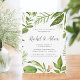 Unsere elegante Wild Meadow-Einladung zeigt Ihre Party-Details in Graublöcken und Kalligraphie-Schriftzeichen, gerahmt von bemalter Aquarellgrüne in üppigen Farbtönen von Frühlinggrün, Oliven und Farn. Moderne und dennoch Bio Wahl für Frühjahr- oder Sommerveranstaltungen mit frischen grünen Blätter und Stems im Grünen, 2017.
