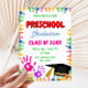 Feiern Sie den großen Meilenstein Ihres kleinen Absolventen mit dieser bezaubernden Vorschulabschlussparty Einladung! Ideal, um das Ende ihrer Schulzeit zu verkünden und Freunde und Familie zur Feier einzuladen. Diese editierbare digitale Einladung kombiniert spielerisches Design mit einfacher Anpassung, sodass Sie die Details in wenigen Minuten personalisieren und per Text, E-Mail oder Print versenden können!