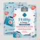 Niedliche blaue medizinische Einladung für das Party von Kindern. Diese lustige Einladung wird perfekt sein, um alle kleinen zukünftigen Ärzte zu diesem lustigen verschreibungspflichtigen Party einzuladen.