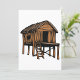 Ein Strohhaus auf Pfählen. Dieses Design sieht wirklich effektiv auf diese Einladungen