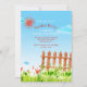 Eine sonnige Einladung mit einem Picketzaun und einem Blumengarten. Ideal für eine Frühlings- oder Sommerfeier. (<a href='http://www.freepik.com/free-vector/watercolor-sunny-landscape-banners_1041737.htm'>Designed by Freepik</a>). <br/>()<br/>Die Karte lässt sich einfach mit Ihrem Wortlaut, Schriftart, Schriftart und der Auswahl von sechs Papiertypen anpassen.<br/>() Nicht genau das, was Sie suchen? Alle unsere Produkte können auf Ihre Bedürfnisse zugeschnitten werden, ohne Aufpreis.<br/>() Kontaktieren Sie uns einfach unter heartfelthelper@gmail.com<br/>()<br/>Koordinierung der verfügbaren Produkte: