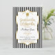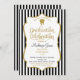 Eine elegante Schwarz-Gold Dental School Abiturparty mit goldenem Glitzer-Akzent-Rahmen und schwarz-weiß Streifen mit schwarzem und goldfarbenem Text und einem Stethoskop. Diese elegante Zahnarztgraduierungsparty lädt zum Zahnarzt, Zahnarzt, Mundchirurg, Kieferorthopäden oder Zahnarzt ein.