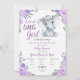 Ein süßes kleines Mädchen ist auf dem Weg! Personalisierte doppelseitige Lila Rose und Graue Elefant/Peanut Babydusche Einladung zum Feiern der Ankunft eines neuen Kindermädchens!