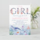 Niedlich Es ist ein Mädel unter der Babydusche mit Wasserfarbe Wal, Meeresschildkröte, Quallen, Oktopus, Goldfisch, Muscheln und Korallen Pflanze.