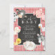 Oh Baby Farm Animals Dusche Adorable Barnyard Tiere Design mit dem süßesten Kuh, Pferd, Schwein, Röster, Ente, Baby Küken & Schaf Set auf einem roten Gingham Hintergrund. Dreh unsere Karte um eine besondere Überraschung mit unseren niedlichen Bauernfreunden zu sehen. Besuchen Sie unseren Shop, um unsere gesamte niedliche Barkefreunde-Kollektion zu sehen, die sich mit neutraler, Jungs- oder Mädchendusche auskennt.