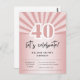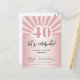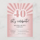 Mit diesem Retro-inspiriert Design in Rose-Goldfarben strahlt das Party Ihres 40. Geburtstags ein Glanz aus. Einfach mit allen Veranstaltungsdetails anpassen! Rose- und Pastellrosa in sonnigen Streifen, die an den Vintagen Stil der 60er Jahre erinnern, jedoch mit einem modernen Akzent. Nummer "40" in groben Vintagen Schriften und die Worte "lassen Sie uns feiern" in einem zeitgenössischen handgeschriebenen Kalligraphie-Schriftart, plus bearbeitbare Felder für Ihre eigenen Inhalte.