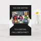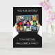 Ein Cartoon mit einem Rutschtop, das ein virtuelles Party mit halben Buchstaben zeigt. Die Worte "Sie sind zu einem virtuellen Halloween-Party eingeladen" begleiten das Bild.