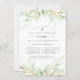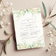 Elegante Aquarellfarben, botanische Einladung für die erste heilige Kommunion Ihrer Tochter umrahmt Ihre Kirchenfeier und die Details des Party mit einem Rahmen aus reinem pastellfarbenem Aquarell und Blätter. Ein winziges Kreuz vervollständigt das Design.