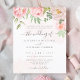 Eine elegante blumengeschmückte Hochzeitsveranstaltung mit blütenrosa Aquarellbäumen und Rose mit moderner handgeschriebener Kalligraphie. Dieses wunderschöne Design ist ideal für Hochzeitsfeiern im Frühjahr und Sommer mit einem romantischen oder Vintagen Thema.