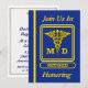 Diese blaue und goldene Einladung ist auf der Vorderseite mit dem pensionierten Doctor MD Caduceus Schild dekoriert. Sie können diese Karte anpassen, indem Sie Ihre Daten in die dafür vorgesehenen Felder eingeben.