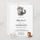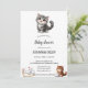 babydusche Katze Einladung Adorable Baby Dusche Einladungen mit einer Aquarellbild eines Tabbykätzchens in einem Feld von Wildblumen. Offzentes Design mit Skriptakzenten. Die Rückseite ist sage grün. Die Dusche ist sauber, die Dusche ist sauber.