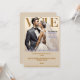 Hochzeitseinladung, die ein Hochzeitspaar auf einem Titelblatt des Magazins darstellt. Braut und Bräutigam mit den neuesten Modellen der Mode. Individuelle Hochzeitskarte.