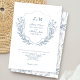 Elegantes Monogramm mit floralen Wappen Design Hochzeitsempfang. Das Blumendesign und die Linienführung sind in einer schönen, staubblauen Farbe gehalten. Bereit für Sie, um mit den Details Ihres besonderen Tages. Bitte stöbern Sie in der Monogram und Floral Wappen Wedding Suite für passende Produkte.