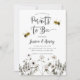 Whimsical Baby Dusche Einladungskarte mit Aquarellbild einer Hummel und Wildblumen. Im Text steht: "Lass uns die Eltern in Biene duschen."