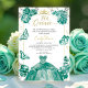Die Mis Quince Quinceanera Einladung mit einem atemberaubenden smaragdgrünen Kleid, das mit wunderschönen Blumenmotiven und Schmetterlingsdesigns geschmückt ist. Diese elegante Einladung ist leicht zu personalisieren und ermöglicht Ihnen eine einzigartige und unvergessliche Ankündigung für Ihre besondere Feier. Dieses von CaMiDesigns entworfene exquisite Werk spiegelt das Wesen einer magischen Quinceanera wider. Für Unterstützung bei Bestellungen, Versand, Produktinformationen und vielem mehr wenden Sie sich bitte direkt an den Zazzle Kundenservice.