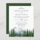 Wasserfarbenprägung Rustikaler Wald Hochzeit - mit einem wunderschönen grünen, wasserfarbenen Wald mit einem Berg im Hintergrund, mit moderner Typografie für ein sauberes, klassisches Aussehen. Unser hochwertiges Template macht es so einfach, Ihre Einladung individuell anzupassen und sie zu Ihrem eigenen zu machen. Die Rückseite der Einladung wird in dunkelwaldgrün angezeigt, aber Sie können sie leicht ändern, um sich mit Ihrer Hochzeitsfarbenpalette abzustimmen.