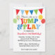 Unsere farbenfrohe Jump & Play Balloons Einladung in Primärfarben enthält farbenfrohe Briefe, Muster und Ballons und lädt jedes Party mit einem Bounty House, Trampolin oder Jump and Play zum Spielen ein.