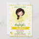 Lemon Geburtstagseinladung für Mädchen. Lemonade Party einladen. Niedliche Einladung zum Geburtstagsfest Ihres kleinen Süßes mit gelben Zitronen, Limonade und brünettem Mädchen mit braunem Haar. Editieren Sie diese einfach zu bedienende Vorlage einfach im Menü Personalisieren, um sie zu einem speziellen zu machen.