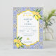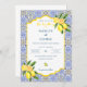 Feiern Sie Ihren besonderen Tag mit dieser eleganten, mediterran inspirierten Hochzeitseinladung. Mit lebendigen Zitronen und aufwändigen blauen Fliesen Set es einen fröhlichen und zeitlosen Ton für Ihre Hochzeit. Ideal für Sommer oder Hochzeiten in Urlaubsort!