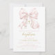 PINK BOW - Diese rosa Coqette Bow Girl Baptism Invitation ist voll editierbar, kann gedruckt und verschickt werden, oder die Taufe Ewigkeit kann über E-Mail und soziale Medien geteilt werden! Diese Rosa Christening Invitation zeigt einen eleganten, rosa Coquette Bogen mit weichen Perlen und Gold und Rose Gold Text. Diese Taufe / Taufe Einladung ist sicher, ergänzen jede Taufe, Weihnachten oder Erste Kommunion! Karo unsere "Pink Bow" Kollektion für weitere passende Taufmarkierungen.
